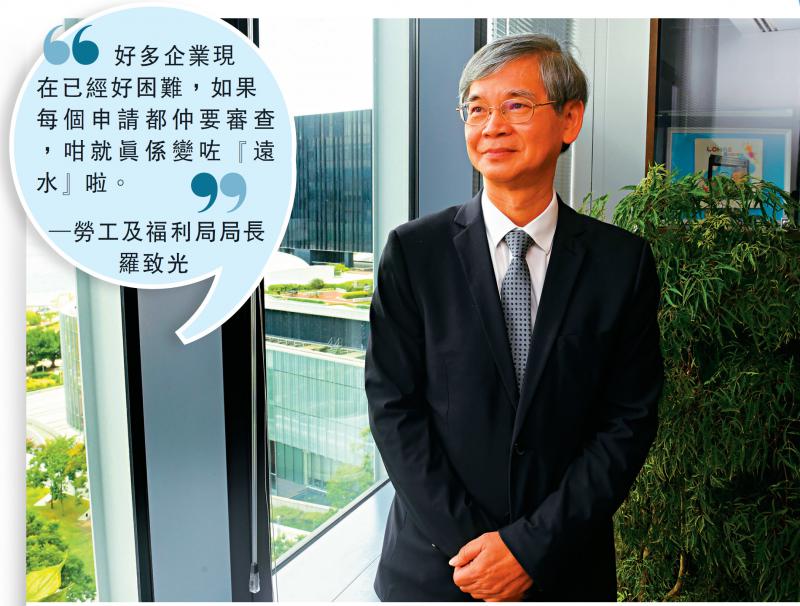 新一轮防疫抗疫基金设810亿元“保就业”计划,劳工及福利局局长罗致光昨日接受《大公报》访问时透露,计划将于下周二公布详情,为令市民尽快受惠,申请将不设审查,但会确保有足够审查途径,追查违规投诉,第一笔补贴料将不迟于六月底发放。他又预期,失业率会进一步升至接近5%,政府将加大力度助年轻人追上“就业快车”,包括增加职业训练局实习工程师的培训计划资助名额,助建造业继续培训生力军。\大公报记者 曾敏捷、谢莹莹