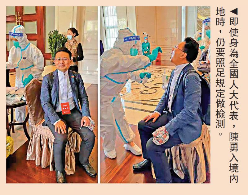 图:即使身为全国人大代表,陈勇入境内地时,仍要照足规定做检测。