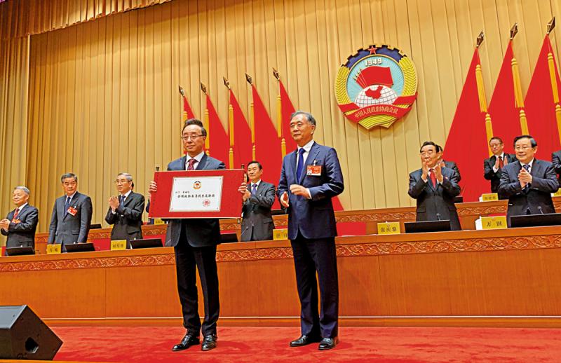 图:全国政协主席汪洋向港区全国政协委员屠海鸣颁发2020年度优秀履职奖。