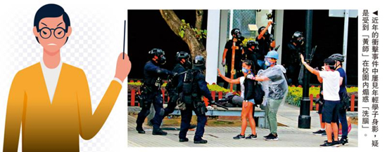 图:近年的冲击事件中屡见年轻学子身影,疑是受到“黄师”在校园内煽惑“洗脑”。