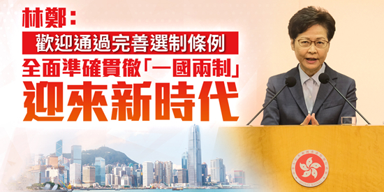 林郑月娥指出,近年香港出现的政治乱象充分说明香港选举制度存在的漏洞,令反中乱港分子有机可乘,进入特区政治体制,严重损害香港宪制秩序、危害国家安全及阻碍施政。为堵塞漏洞,拨乱反正,全国人民代表大会于3月31日通过关于完善香港特别行政区选举制度的决定,全国人大常务委员会在全国人大授权下,于3月30日通过经修订的《基本法》附件一和附件二。她很高兴能够在两个月内快速地完成修改本地选举法例的工作,共同迎来香港政治体制将可确保全面准确贯彻“一国两制”的新时代。
