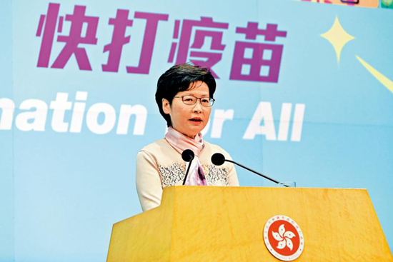 图:林郑月娥强调,面对一些西方国家的霸权主义行径,任何维护国家主权尊严和核心利益的中国人,都应该要有义愤填胸的立场。\中通社
