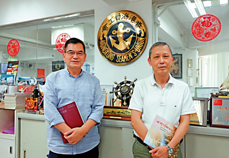 图:香港海员工会成立百年,工会主席张世添(右)和秘书长黎启穗(左)认为,如果国家不强大,我们永远是被人欺负的孤儿。\大公报记者文澔摄