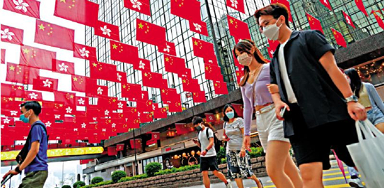 图:有国家作后盾,香港市民得以安居乐业,社会得以繁荣发展,“一国两制”得以行稳致远。