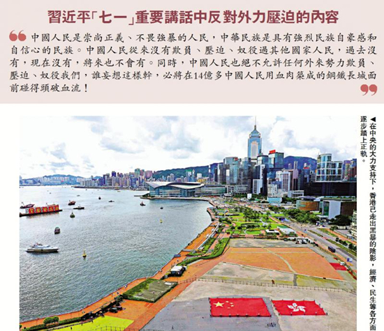 图:在中央的大力支持下,香港已走出黑暴的阴影,经济、民生等各方面逐步踏上正轨。