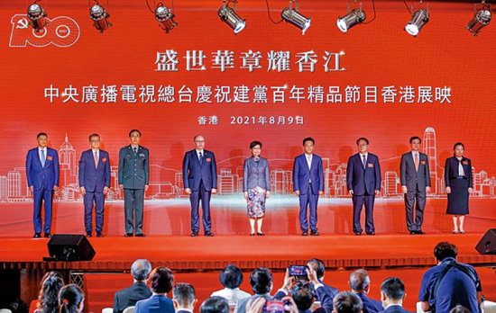 林郑月娥在致辞中说,香港特区是中国不可分离的一部分,与国家同发展、共繁荣。中央坚守对“一国两制”的初心,并时刻关心港人福祉的立场,充分展现了中国共产党对理想的坚持、对信念的坚定,和对自身制度优势的自信。中央广播电视总台庆祝建党百年节目的展映,正是一个重要契机,让全港市民更全面深入地了解中国共产党的百年奋斗历程,培养更坚定的爱国情怀。