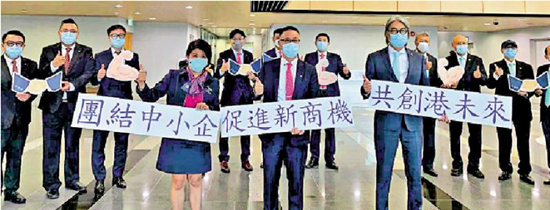 图:中小企业界别代表联合提出“团结中小企、促进新商机、共创港未来”的参选政纲,帮业界早日走出目前困境。