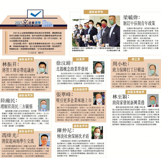 多名参选人表示,这是完善选举制度后的第一次立法会选举,希望能够竭尽所能,致力改善香港深层次问题,帮助业界了解国家政策,把握国家发展机遇,令市民能够安居乐业。