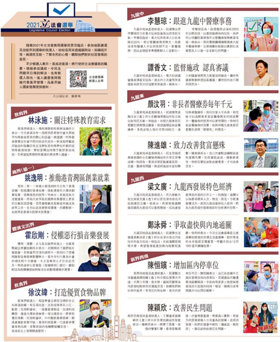 随着2021年立法会换届选举投票日临近,参加地区直选及功能界别选举的候选人,纷纷在周末通过摆街站、拍摄短片等,与选民互动,了解市民的心声,听取他们对于社区发展的意见。