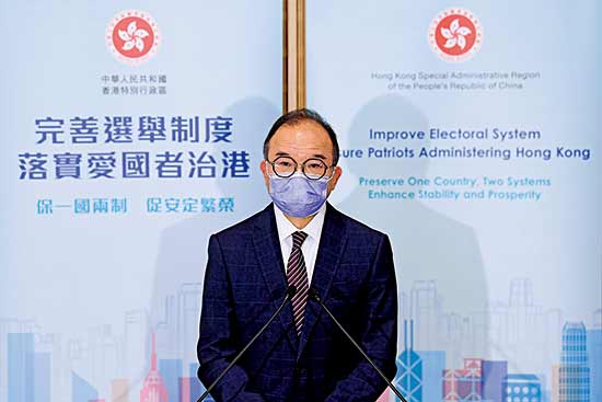 图:曾国卫表示,本次让内地港人在边境投票站投票属一次性安排。
