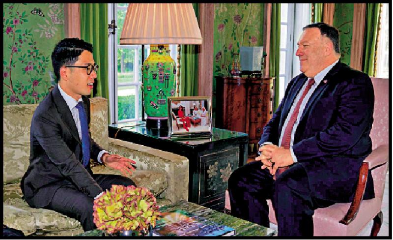 图:去年七月,罗冠聪与蓬佩奥单独会面,乞求美国打压中国发展,极度无耻。
