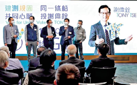 图:立法会选举建筑、测量、都市规划及园境界候选人谢伟铨昨日举行誓师大会。