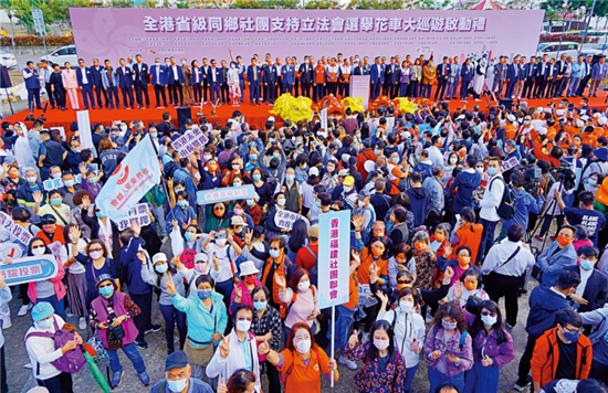 立法会换届选举将于后日(19日)举行,包括香港广东社团总会、香港福建社团联会、香港广西社团总会、香港海南社团总会及香港浙江省同乡会联合会在内的26个香港省级同乡社团,昨日上午合办百辆花车大巡游活动,分五路巡游港九新界,深入动员广大选民踊跃投票,选出爱国爱港、德才兼备的治港人才。