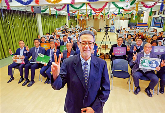 图:教育界候选人林日丰举行造势大会,超过50名教育界知名人士出席。\大公报记者文澔摄