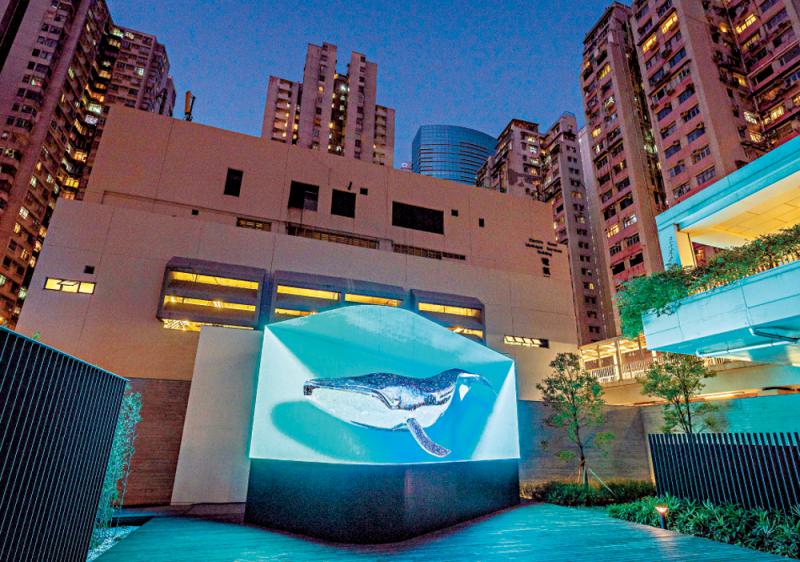 由知名韩国艺术团队dstrict创作的立体数码艺术展览“新域混影”,在大型屏幕上呈现翻腾巨浪,以及蓝鲸畅泳的超像真数码影像,巧妙地连结艺术与科技,冲击观众的视觉界限。