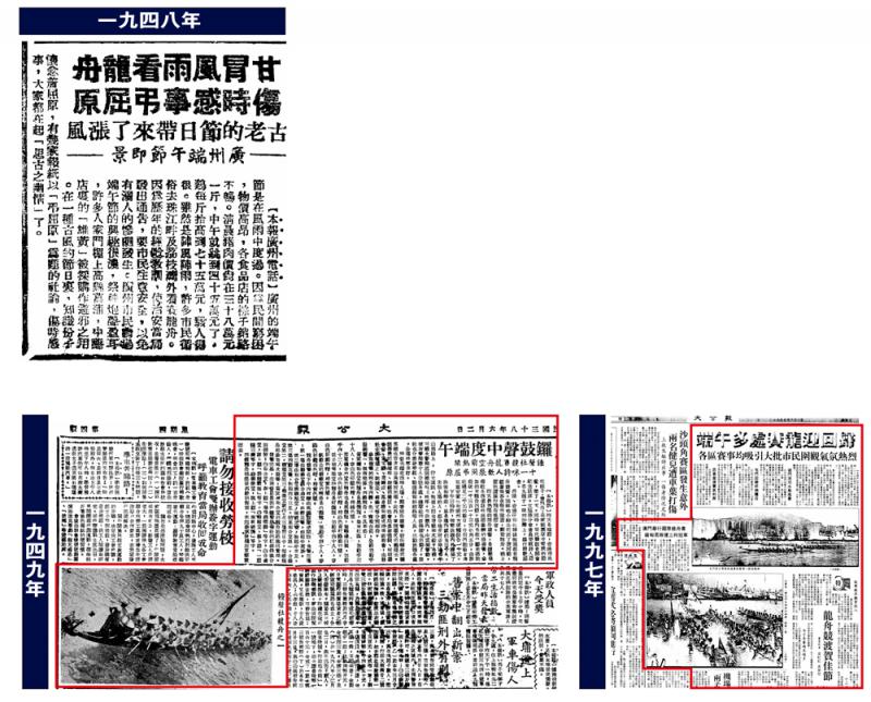 翌年,《大公报》以“锣鼓声中度端午”为题,聚焦香港“吃糉子,看龙舟”,还有纪念“诗人(屈原)节”的景象。这篇报道篇幅更大,对于香港读者而言,显然更“贴地”。之后的端午节,《大公报》在报道上都有不同角度。