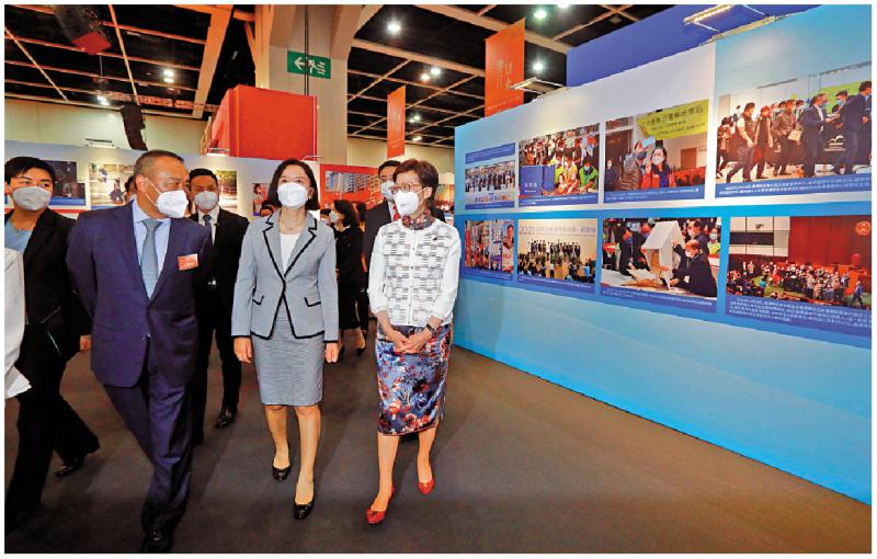 展览回顾了香港回归前的历史、“一国两制”开创性的构想,以及香港回归祖国的怀抱。回归前后,始终不变的是中央对香港的重视和支持、对香港同胞的关爱和热情。从源源不绝供水到香港、一九九八年金融风暴时挺港、二○○三年沙士后推出一系列惠港政策,到这两年多以来抗疫历程,中央对香港的支援永远到位,让香港人感受至深。