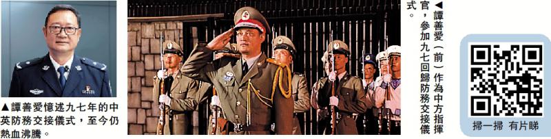 1997年香港回归,谭善爱作为中方指挥官参加防务交接仪式。“我代表中国人民解放军驻香港部队接管军营,你们可以下岗,我们上岗!”防务交接仪式上的这句话,看似简单却历经了3次修改。