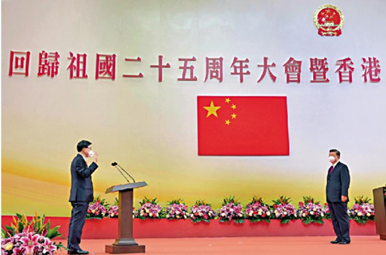 中共中央总书记、国家主席、中央军委主席习近平,在庆祝香港回归祖国25周年大会暨香港特别行政区第六届政府就职典礼上发表重要讲话,并就香港开创新局面、实现新飞跃提出四点希望,包括着力提高治理水平、不断增强发展动能、切实排解民生忧难、共同维护和谐稳定。