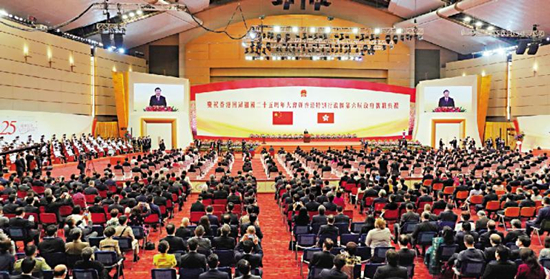 图:庆祝香港回归祖国二十五周年大会暨香港特别行政区第六届政府就职典礼,昨日在会展中心隆重举行。\大公报记者林良坚摄