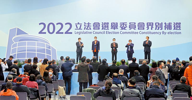 图:立法会选举委员会界别昨日举行补选,结果由陈永光、黄锦辉、何敬康、尚海龙当选。