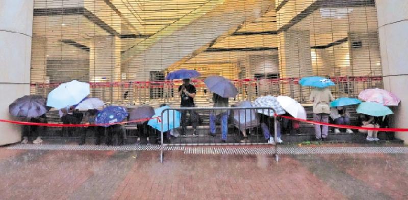 图:黎智英案原定昨日聆讯,但因黑雨延期,大批市民较早前已到达法院外轮候旁听席。