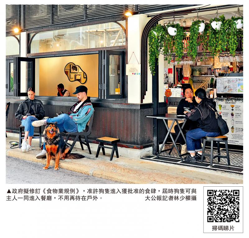香港养宠文化越趋盛行,宠物经济渐受重视。特区政府建议修订《食物业规例》,让狗主带狗隻进入获批准的食肆。新措施将以“小步走”方式推展,首阶段设约500至1000个名额,火锅和烧烤店禁止申请,预计最快今年6月批出,半年后再检视。获批餐厅须有明确标示,进入食肆的狗须绑上长1.5米内的牵引带并不能上枱,有“伤人案底”的狗与格斗犬不准入食肆。食肆一年内违规三次会被剔出名单,一年内不得再申请。