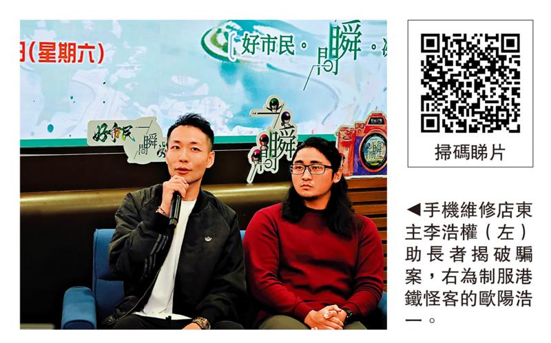 “当时,我已经拿出相关报道,告诉她们是诈骗,但她们最初仍然不相信,以为只要支付手续费,就可以取回钱!”最后,李浩权用了一小时才成功说服两人,又协助婆婆封锁骗徒的联系方式,令双方不能再联络,成功帮人之余,他笑言:“没想过自己只是维修手机,也可以拿到好市民奖。”