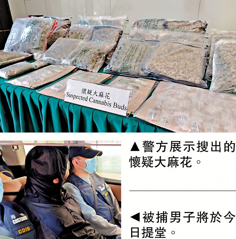 【大公报讯】记者陈泓源报道:海关毒品调查科前晚(12日)在屯门一个屋苑停车场,截查一名33岁本地男子,在他管控的私家车检获约10公斤怀疑大麻花,市值约210万元,估计用于供应新界区的毒品拆家和用家,初步调查,贩毒集团利用私家车作为流动毒品储存仓,进行毒品包装和分销。