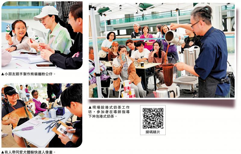 昨日的北角东岸板道,添置了港式奶茶工作坊、面粉公仔体验工作坊、怀旧美食摊位、快速人像画等摊位,吸引不少家庭扶老携幼,在海滨长廊上“大叹美食”,现场弥漫着欢声笑语。