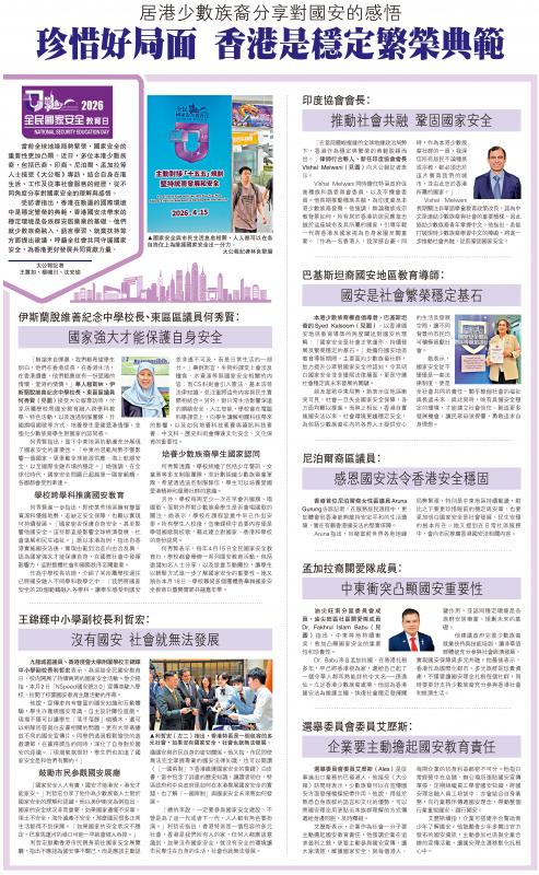 他建议政府完善少数族裔就业扶持与技能培训,让非华语群体能充分参与社会经济发展,实现国安保障与多元共融。他最后表示,香港作为国际化都市,多元族群是珍贵资产,不仅要让国安理念扎根每个社群,同时要更好支持少数族裔充分参与香港社会和经济生活。