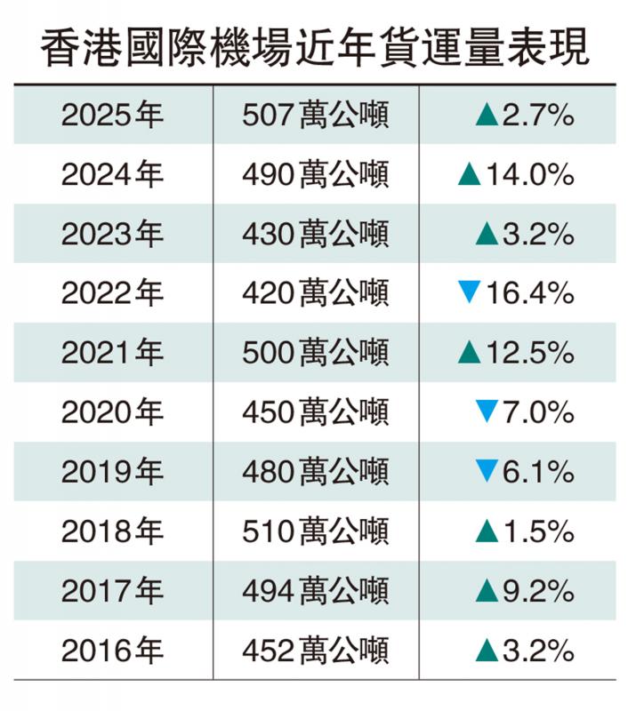 【大公报讯】继荣膺全球最佳机场后,香港国际机场本月迎来第二个好消息!国际机场协会公布2025年全年数据,香港国际机场蝉联全球最繁忙货运机场,年内货运量达507万公吨,是自2010年以来第15次高踞全球货运机场排名榜首。香港机管局行政总裁张李佳蕙表示,面对区内激烈竞争及全球经济不明朗因素,香港国际机场将加倍努力,积极提升竞争力,为航空货运业务拓展新领域。运输及物流局局长陈美宝表示,在地缘政治形势复杂的今天,这个殊荣更是在巩固香港国际航空枢纽地位工作的强心针。