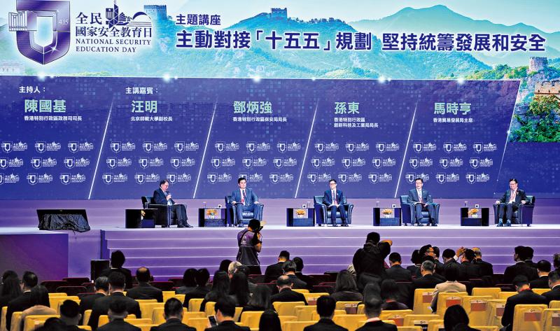 4月15日是“全民国家安全教育日”,政务司司长陈国基主持了题为“主动对接‘十五五’规划 坚持统筹发展和安全”的主题讲座。内地学者、特区政府官员及商界人士等主讲嘉宾分享了把握“十五五”机遇,统筹高水平安全与高质量发展的意见。