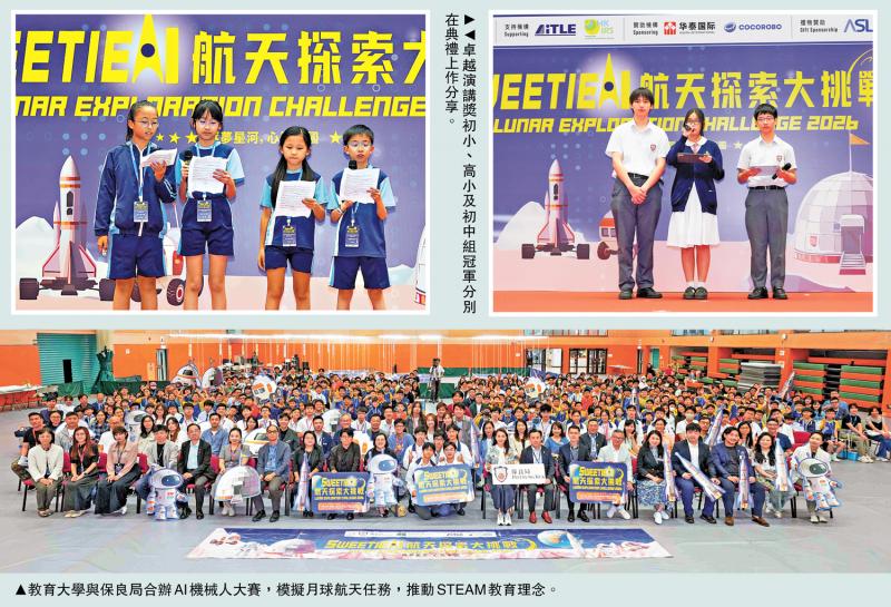 【大公报讯】记者郭如佳报道:政府大力推动STEAM教育,培育创科人才,应从中小学生开始。香港教育大学与保良局合办“SWEETIE AI航天探索挑战2026”,中小学生有机会亲身参与人工智能和航天工程等尖端科技。创新科技及工业局副局长张曼莉表示,活动响应政府创科教育方向,为学生提供实践平台,鼓励学生将学到的知识转化为发展动力,投身创科事业,贡献香港建设国际创科中心和国家科技强国战略。