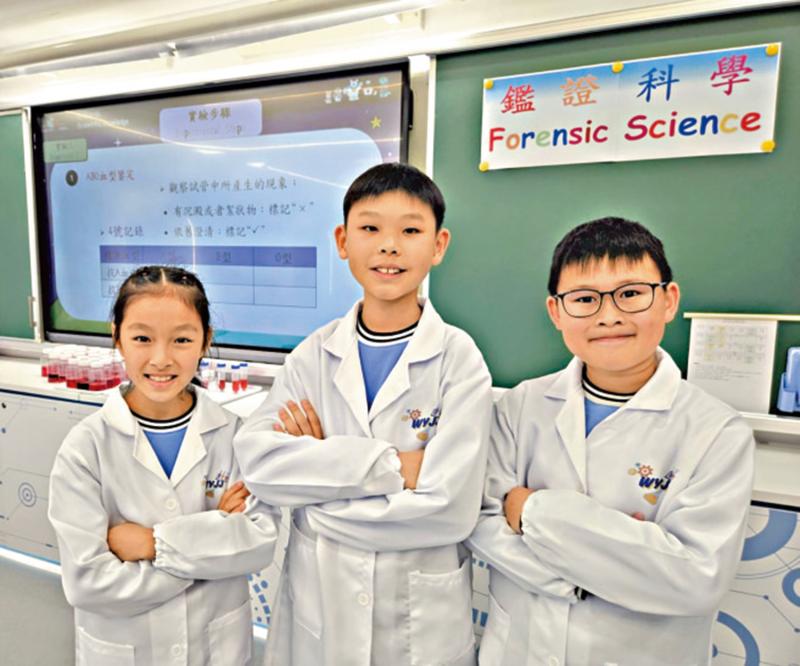【大公报讯】记者姚高报道:小学常识科在今学年正式分拆,转为科学科及人文科。位于将军澳的东华三院王余家洁纪念小学(王余家洁)率先在小一及小四的科学科采用校本课程,引入科学鉴证元素,借侦查谜题提升学生学习动机,让学生化身“神探”,采集指纹、分析血液等,培养学生的解难能力及科学素养。学校并投放逾300万元,兴建全新“INNO Space”和科学实验室,让每位学生实践科学的核心“动手做”。