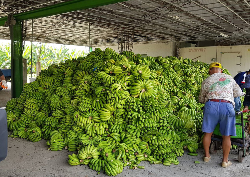 图:高雄市农业局把堆积如山的香蕉送到畜牧场餵猪或堆肥场/中央社