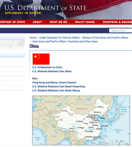 海外网今日登录美国国务院网站发现,目前美国国务院官网仍是如此,看来所谓台当局“严重关切”,并未起到任何作用,“一个中国”原则早已是国际社会的普遍共识。