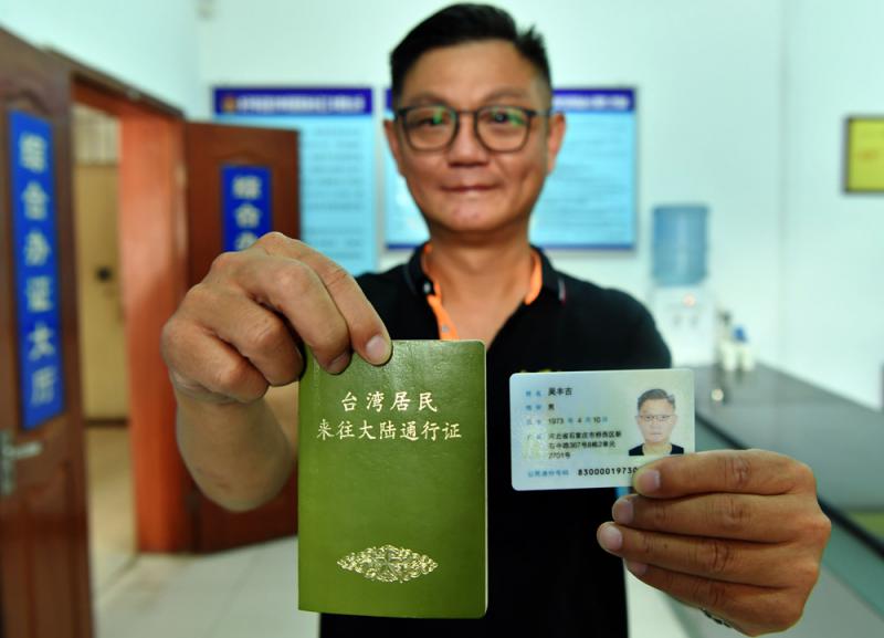 图:外界质疑台当局限缩大陆人士赴台是为了报复大陆开放申领居住证。图为台胞申领居住证 资料图片