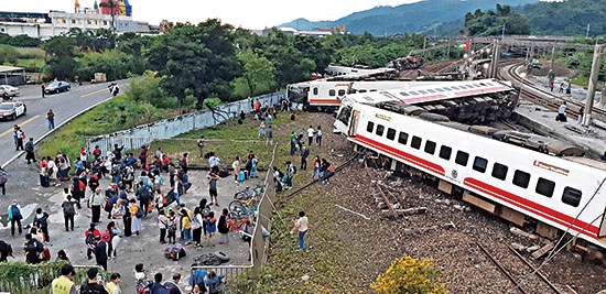 图:台铁“普悠玛号”列车21日下午4时50分在宜兰发生出轨事故 /台湾“中央社”