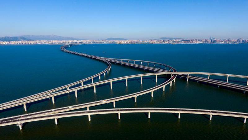 图:2011年中开通的青岛胶州湾大桥曾被美国《福布斯》评为“全球最佳桥梁”\资料图片