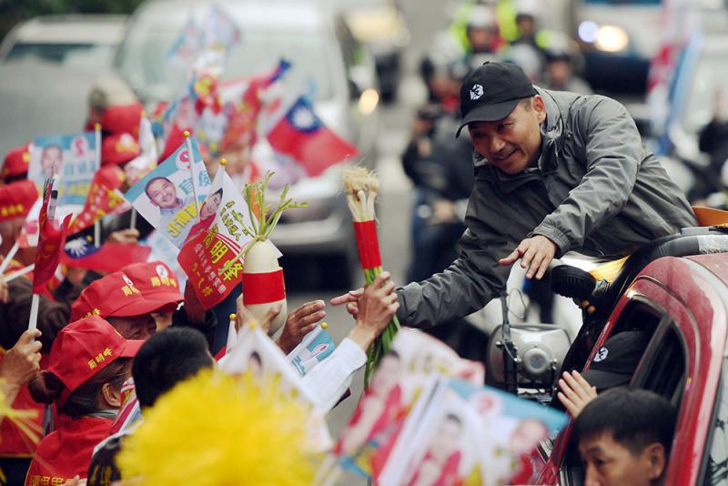 图:国民党新北市长候选人侯友宜22日在新店以车队扫街拜票\中央社