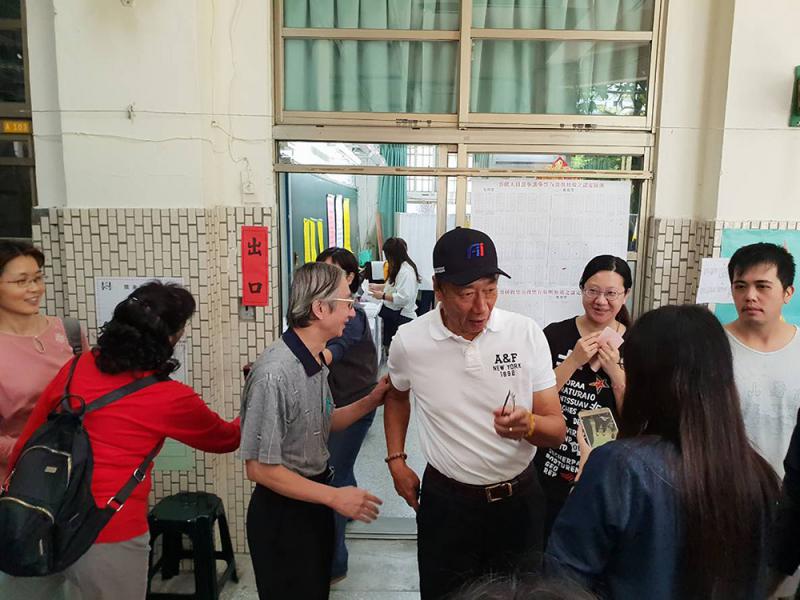 资料图:鸿海董事长郭台铭在台北东门小学投票站投票\“中央社”