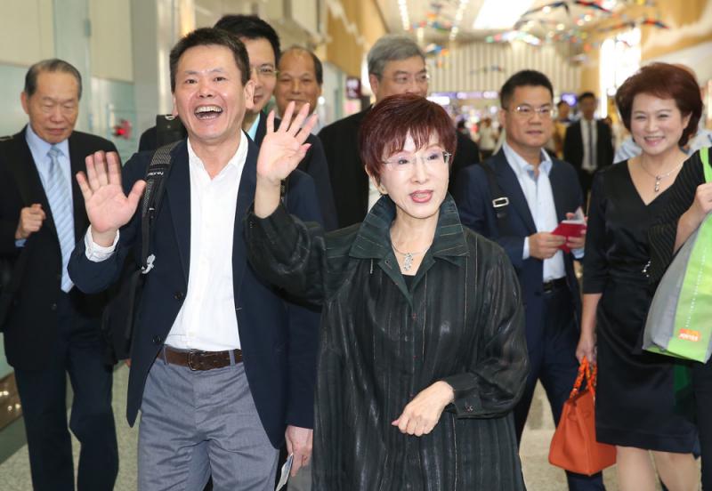 图:中国国民党前主席、中华青雁和平教育基金会董事长洪秀柱12日率台湾各界人士代表团一行赴北京参访。行前,洪秀柱表示,希望透过民间交流,做两岸沟通交流的工作 中央社