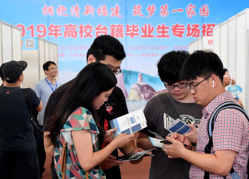 图:26日,“2019年高校台湾毕业生专场招聘会”在福州举行,面向台湾青年提供逾2000个就业岗位 中新社