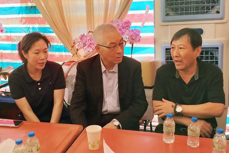 图:国民党主席吴敦义(中)16日表示,将邀前鸿海董事长郭台铭联系见面,盼他以大局为念,共促国民党重返执政 "中央社"