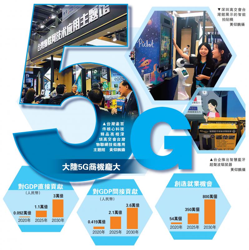 “大陆信息通信市场规模庞大,5G产业发展前景广阔。台湾在信息通信行业有较强竞争力,5G将为台湾相关企业发展带来新的巨大商机。”台企DOD总经理张邱竣在惠台“26条措施”中看到5G的商机,对在大陆的发展充满信心。此外,第21届中国国际高新技术成果交易会正在深圳举行,不少台湾参展商表示,台湾的科技精品十分精致且个性化,希望开拓粤港澳大湾区市场。\大公报记者 石华、黄仰鹏深圳报道