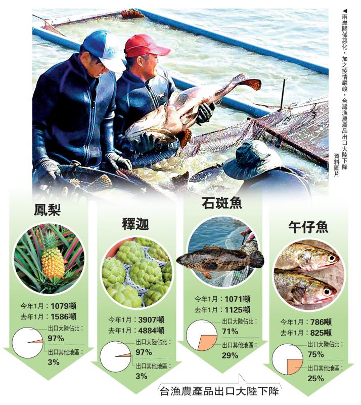 图:两岸关系恶化,加之疫情严峻,台湾渔农产品出口大陆下降\资料图片