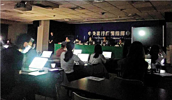 图:高雄市兴达电厂13日下午2时37分因事故停机,造成全台大停电,约400万户、1319万户次受影响。图为台湾疫情指挥中心在记者会期间突遇停电。\网络图片