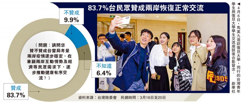 萧旭岑表示,台陆委会日前公布民调,说超过八成民众赞成台当局随疫情纾缓,让两岸恢复正常交流,蔡英文也说“和平是两岸唯一选项”,但陆委会对于基金会举办两岸学生交流的态度,好像和台当局表达的不一样。