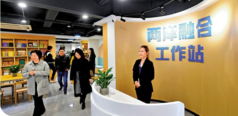 图:大陆方面积极推动两岸融合发展。图为福州市建立两岸融合交流中心,设有两岸融合工作站、台胞接待区、创客工作室、图书阅读区、人才服务工作室、多功能会议室等。\中新社